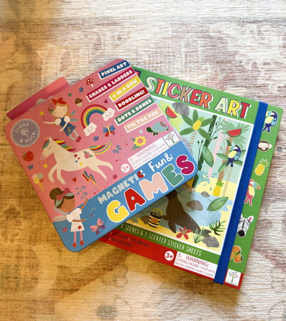 11. Floss and Rock Toys. I first discovered this brand of toys on Maisonette. They sell many of their products on Amazon as well. The price is great, and my daughter loves almost all of the things that I have purchased from this brand. These are definitely travel staples. Here are some of my favorites. This magnetic multi play book has both girl and boy themed options. This is one of my daughter’s favorites from the Floss and Rock Toys we have purchased. I encourage you to explore many more of the Floss and Rock options on Amazon. They have mess free books for coloring, magnets, stickers, and dress up play.