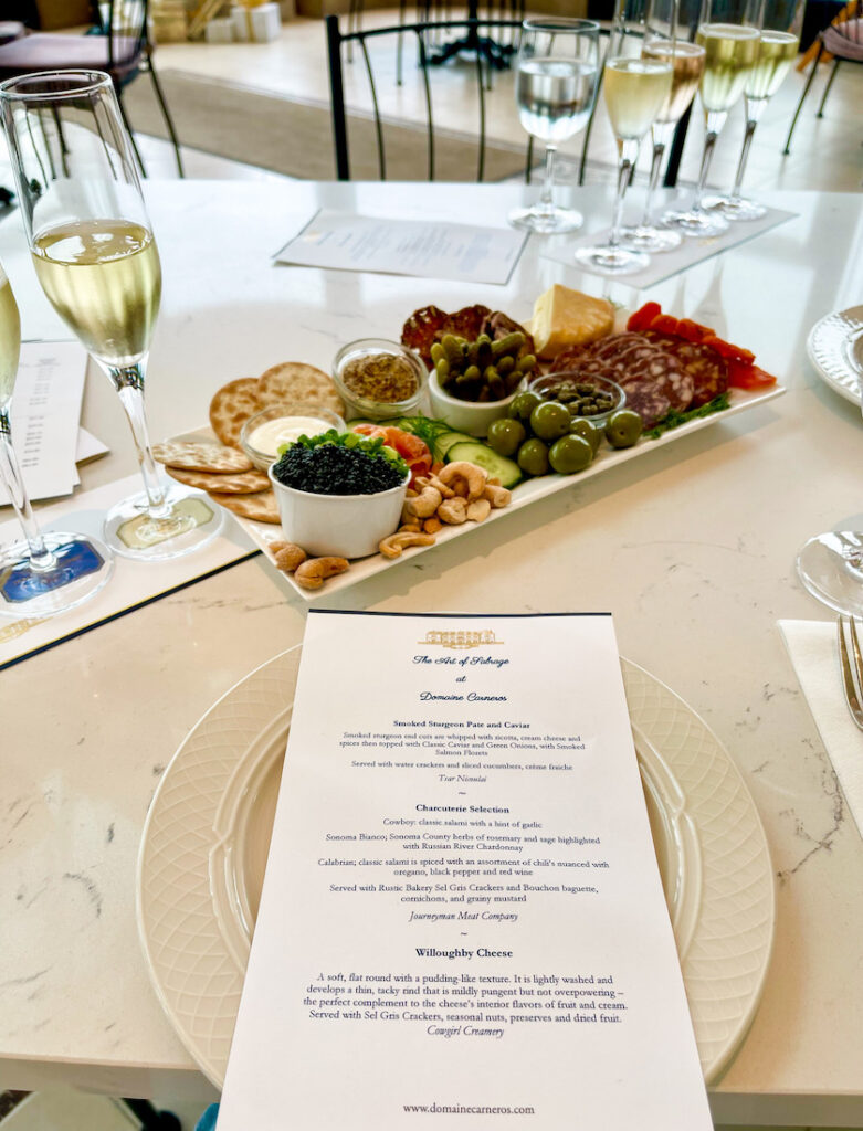 6. Domaine Carneros. You have to love sparkling wines in order to visit Domaine Carneros. This estate has quite the entrance and will have you traversing quite the staircase outside to their entry. Inside you will be seated at a table and offered the tasting that you booked in advance. I went with the Art of Sabrage which allows you to taste 4 of their sparkling wines paired with a really amazing charcuterie offering filled with high quality ingredients including Caviar. They also brought around a tasting of a couple of other varietals. Finally, you will end your experience by sabering your own bottle of champagne.